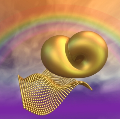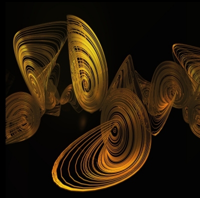 Wieder ein seltsamer Attraktor, der Rössler-Attraktor, wird im nächsten Bild gezeigt, auch hier wurde eine für isosurface aufbereitete Gleichung von Tsutomu Higo verwendet.